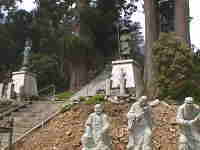 今朝の天気予報どおり雲が厚くて、すきっとしない空模様のなか出発します。歩く距離は21kmほど、夕方までには充分過ぎる距離です。幾つかの角を曲がりながら歩いていると、あの北条市での「つえ大師」のお堂に宿泊することを勧めてくれたお坊さんのような人に出会いました。自転車は下の駅に預けて、山を越えてから取りに行くとの事でした。一緒に話ながら歩いていると、軽トラが追いつき「三角寺まで乗らないか」とのことで二人して荷台に乗りました。さらに、横峰寺さんでちらっとお会いした野宿専門の歩きおへんろさんに追いつきその人も乗せました。黒装束のお坊さん風おへんろさんにも追いつきましたがその人は乗りませんでした。結局4人が雲辺寺を目指しています。