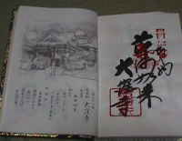 海岸線に直角方向、山に向かって歩くと八十七番札所長尾寺のある街に到着しました。お寺に入ると、既に奉納演奏を終了した三味線おへんろムスメの月岡さんとTV局のスタッフがいて私もインタビユーをされました。どういう訳か、あの「長五郎」という人も自転車を置いて休憩所にいました。月岡さんの奉納演奏風景を水彩画で書いているところで、私にその絵を持って行って月岡さんに渡して欲しいと頼まれ、その絵が完成するまでそこで待ってから八十八番へ出発しました。