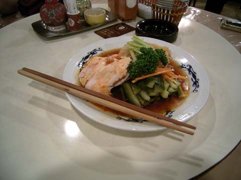 クラゲは、全体に掛かっているタレが、最初の前菜で絶妙でした。甘辛く、酸味はありません。紹興酒の香りもしました。皮を剥いた胡瓜の千切りが、いいアクセントでした。