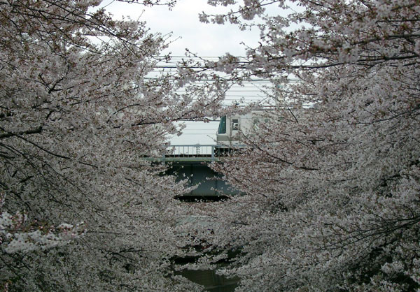 電車の中からも見事な桜が見えます